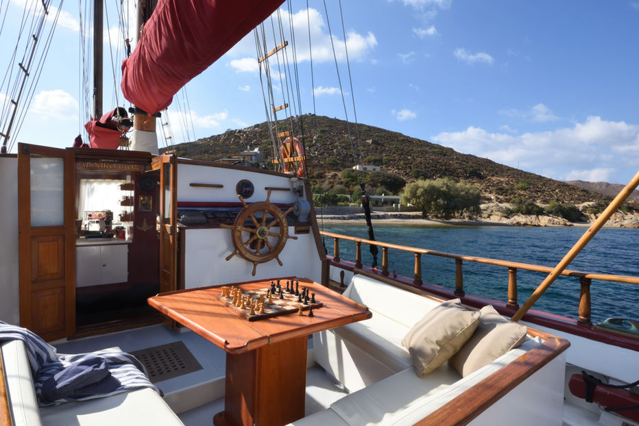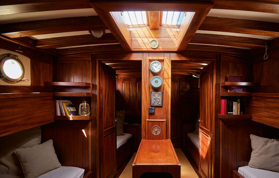 Agios Nikolaos is a 19 meter sailing yacht built in 1928 in Skopelos with a traditional Greek "Karavoskaro" hull design. From 1929 until WW2 it was operated as a cargo vessel under sail power only. After the war it was refitted with its current 1949 Mercedes engine to serve as a fishing boat. It wasn't until 1997 that it was finally refitted to a gaf-rigged Schooner and has been used ever since as a private sailing yacht. One of the last of its kind and declared, S/Y Agios Nikolaos is now designated a heritage protected monument by the Greek Ministry of Culture.